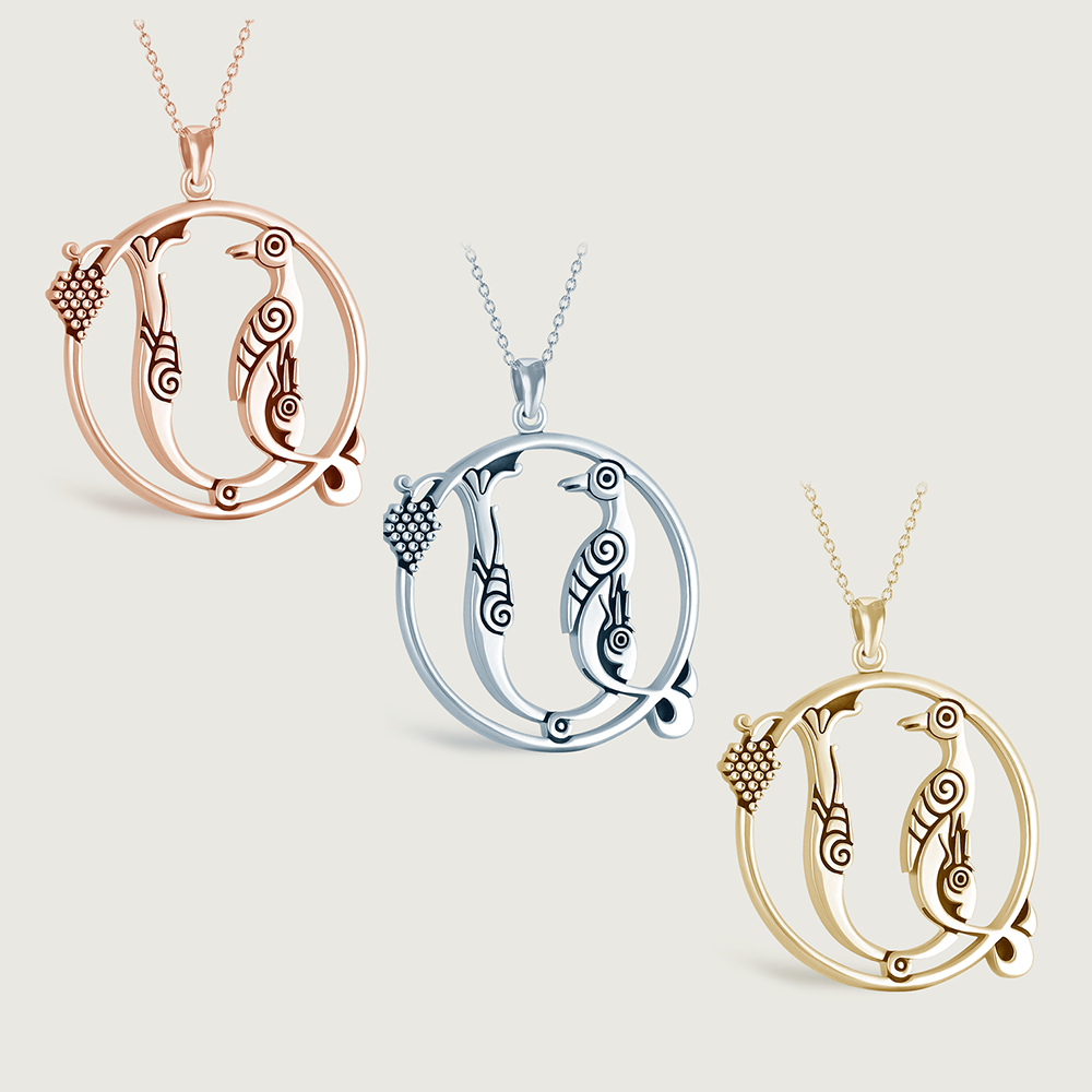Armenian Bird-Letter (Trchnakir) Sterling Silver or 18k Gold Pendant with White, Yellow, or Rose Gold plating, assembled with an 18-inch necklace.