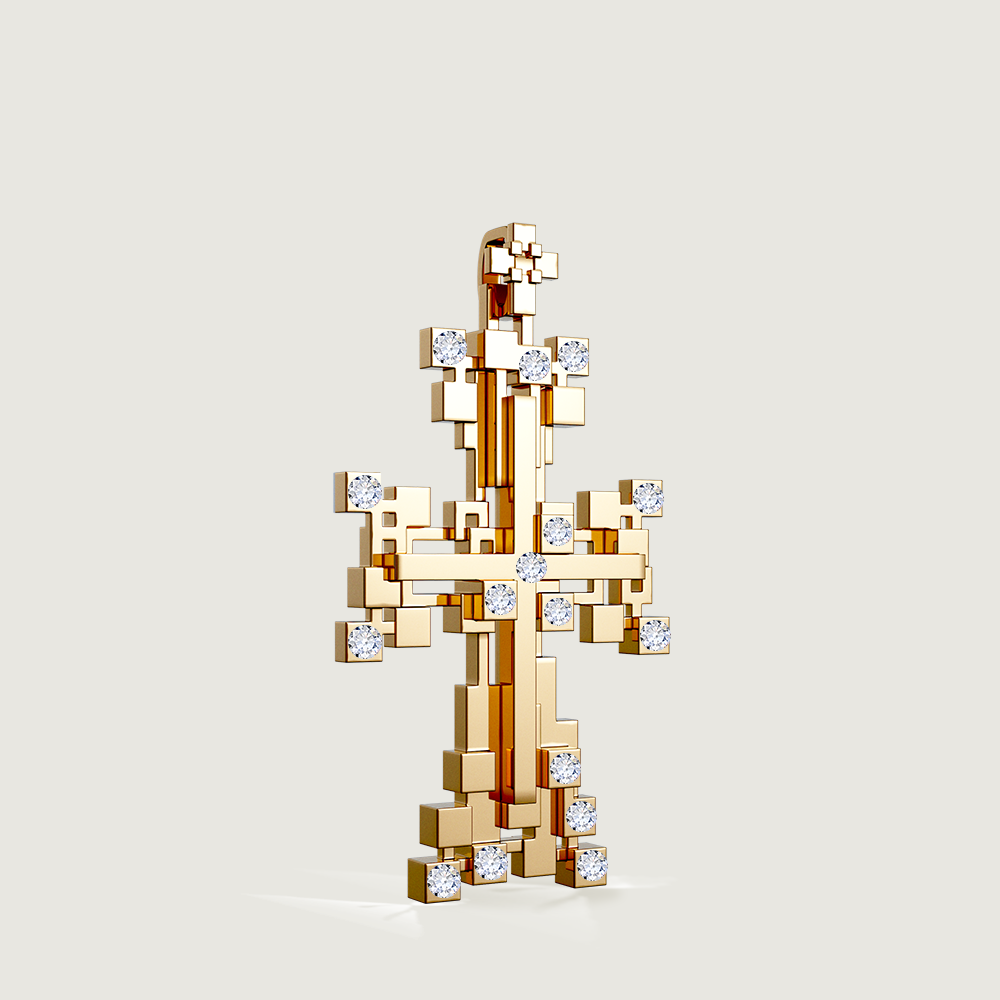 Inspired by the Armenian Blossomed Cross, Nova blends geometric structure with delicate ornamentation. Each diamond is set with care, illuminating the impressionist "buds" that surround the classical cross at its center.